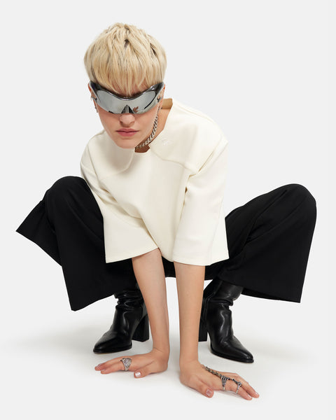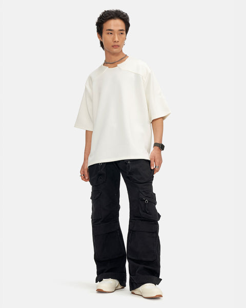Regular priceRs. 3,800.00 Sale priceAs one begins the second step of their purpose, they transition from the role of a learner to that of a worker within the disciplined society of Luminaries. This sacred shift is marked by a symbol meticulously embroidered on the side of their T-shirt, Chiron. The symbol on the back, however, holds a unique significance, as it serves as the prototype of what will eventually evolve into Fetus' manifesto, 'Birth of New Aesthetics'.