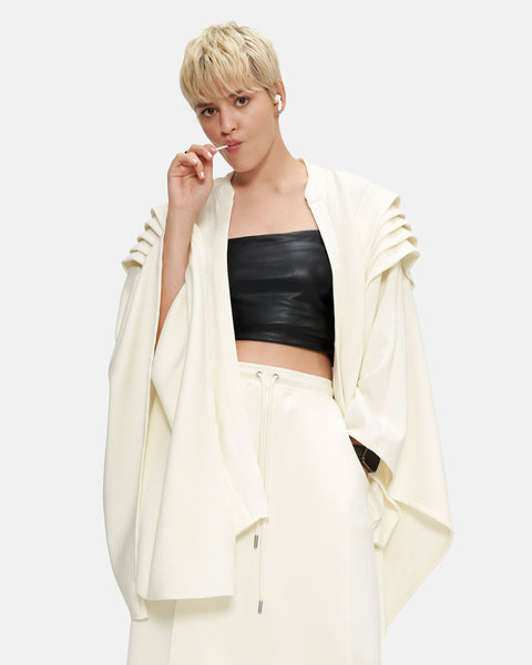Pleats on both sides of the shoulders and the Lumos insignia elegantly embroidered at the back infuses the garment with an aura of luminosity. This is a versatile piece of clothing that can be worn in multiple ways as per the wearer’s desire.