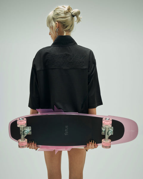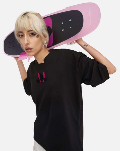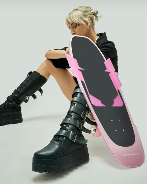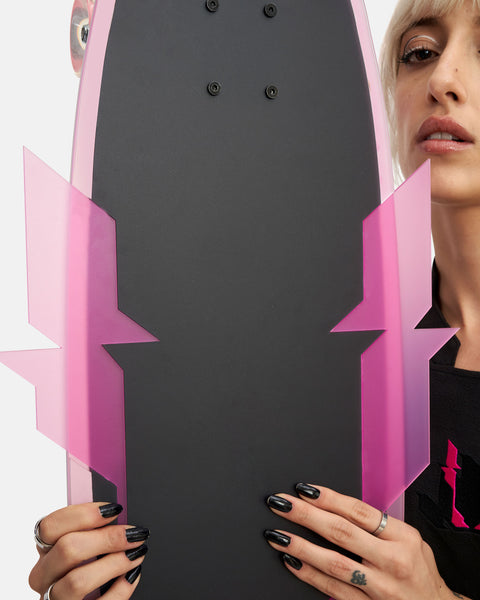 The Nyx skateboard comes with the Nyx NFT, Blackletter T-shirt, Blacklotus enamel pin, screenprinted poster, collectible cards and the clan initiation letter.